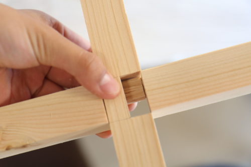 木組みは、計算された複雑なつくりなので、切り込みを入れただけだと
