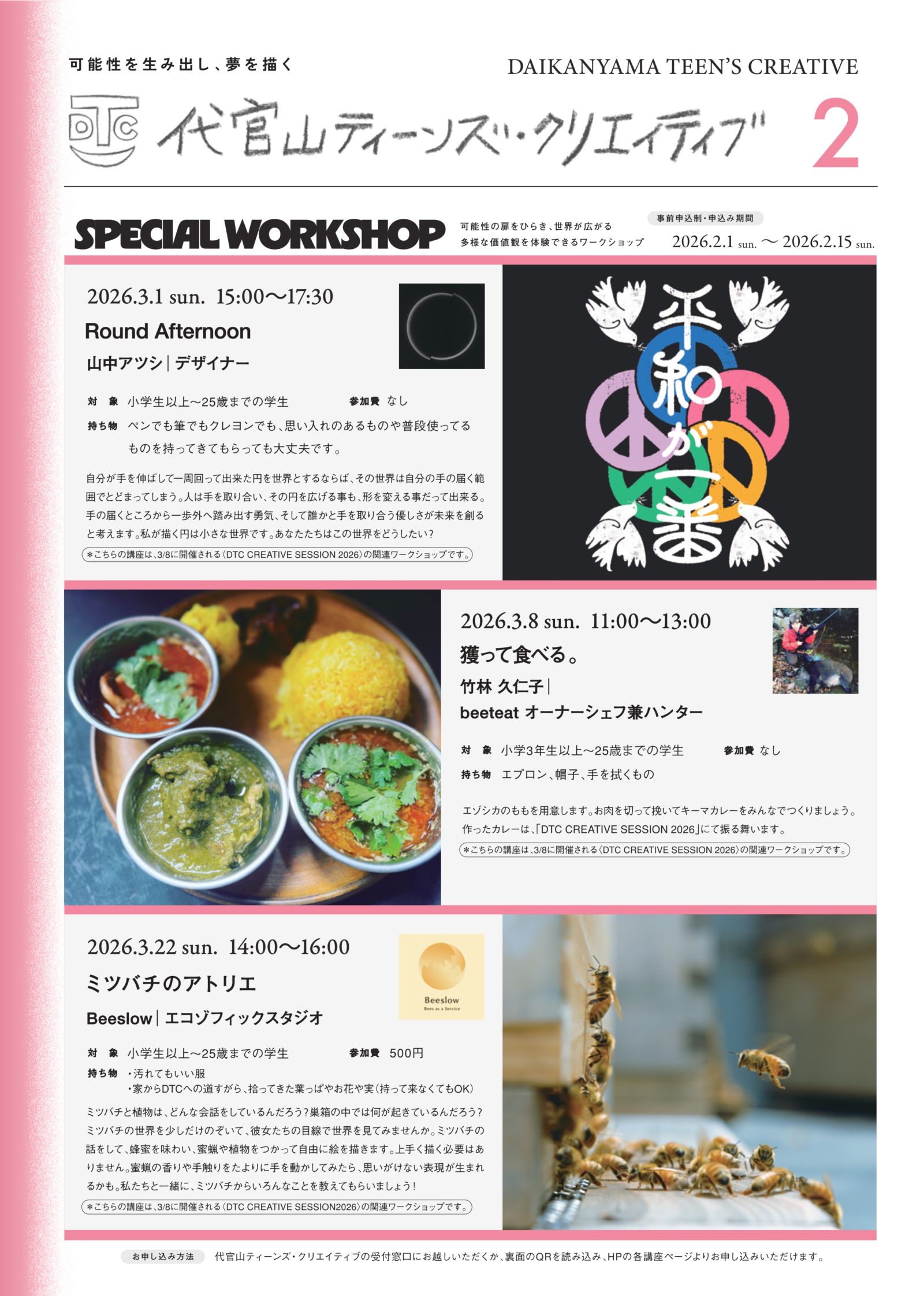 2025/01/10 2月号フライヤー公開のお知らせ 代官山ティーンズ・クリエイティブ 2月号のフライヤーが到着しました。 館内や、渋谷区内の公共施設、学校などで配布されますので2026 ぜひお手に取ってご覧ください。