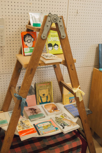 本棚には、絵本や写真集、洋書、文庫、古い雑誌に漫画まで、